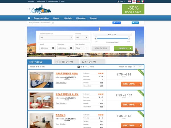 Rovinj Apartments internet stranica