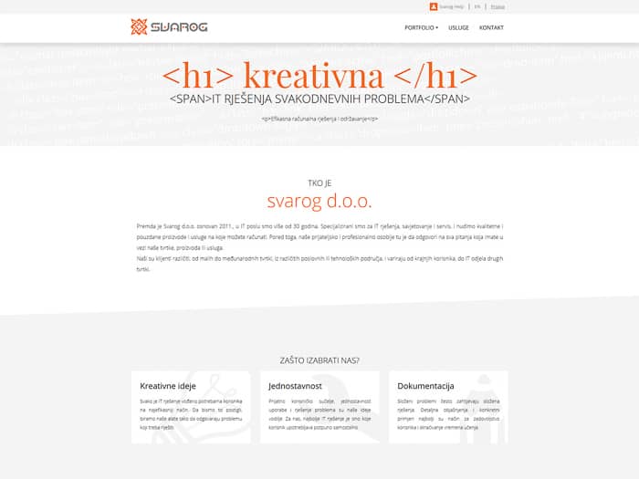 Izrada dizajna internet stranice za tvrku Svarog d.o.o. koja se bavi računalnim rješenjima i windows aplikacijama.